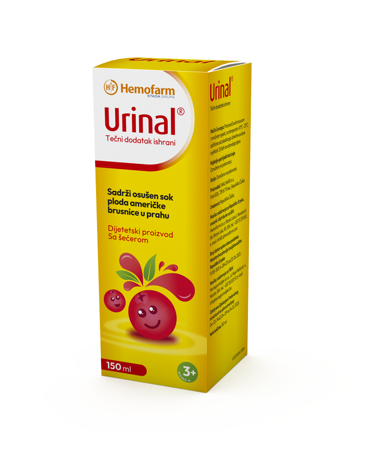Urinal tečni dodatak ishrani namijenjen djeci iznad 3 godine za podršku liječenju i prevenciju rekurentnih urinarnih infekcija.